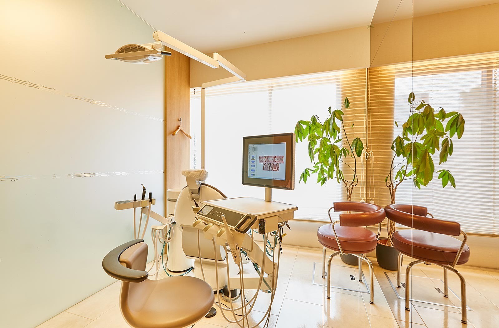 診療室は半個室スタイルを採用しています。また、じっくりと話し合える専用の相談スペースも設けられており、プライバシーが守られた環境で治療計画を相談することが可能です。