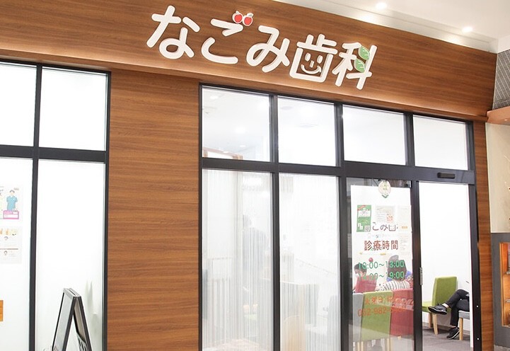 なごみ歯科は、地下鉄 庄内通駅 1番出口から東へ徒歩2分の「イオンタウン名西」2階にあります。イオンタウン内の大型駐車場を利用できるためお車での通院も便利で、お買い物のついでに立ち寄れる好立地です。土日・祝日も19時まで診療を行っており、平日は忙しい方でも通いやすいでしょう。