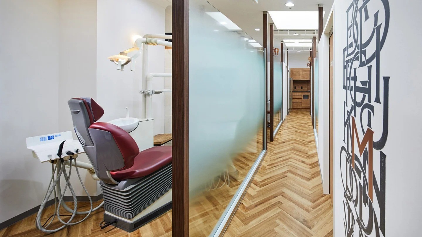 院内はバリアフリー設計で、車椅子やベビーカーを利用する患者様も安心です。診療室はすべて個室または半個室となっており、プライバシーが守られた空間で治療を受けられます。また、オペ室やカウンセリングルーム、メンテナンス専用ルームや院内技工室も完備。院内技工士が常駐しているため、被せ物の製作時に直接意向を伝えることもできる、充実した診療環境が整っています。