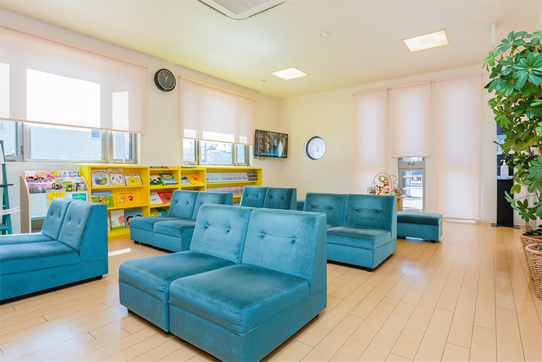 院内設備は、お子様が恐怖を感じないよう幼稚園を意識したキッズスペースのような待合室となっており、床には転んでもケガをしにくい柔らかい素材を採用しています。おむつ交換台や親子で一緒に入れる幼児用トイレを備えるなど、保護者様とお子様が一緒に過ごしやすい環境です。