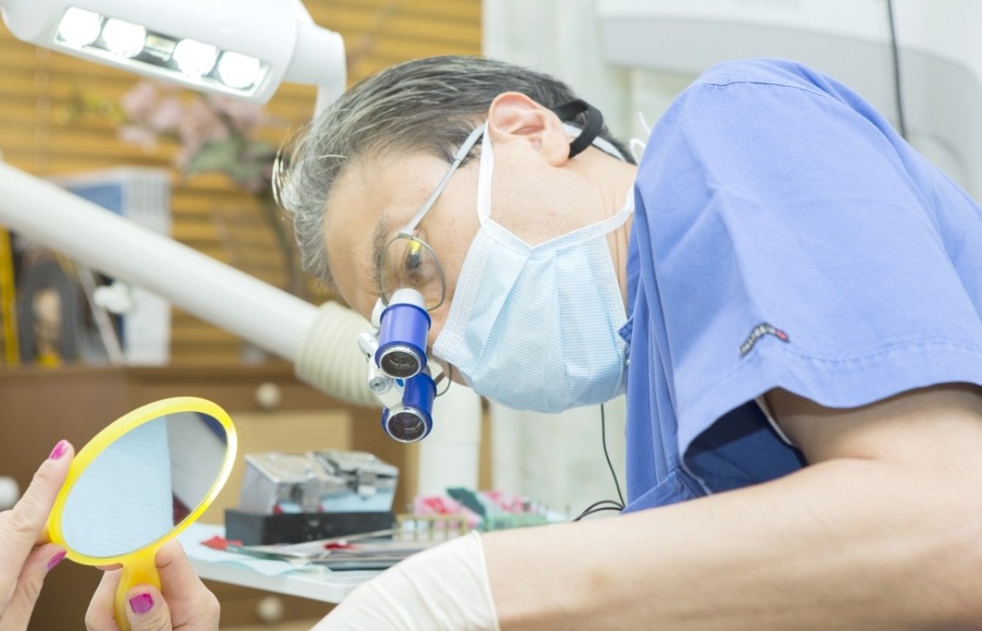 こちらの医院では、むし歯や歯周病、インプラント、矯正歯科といった幅広い診療のほか、結婚式やご出産を控えた方をサポートするブライダル歯科やマタニティ歯科にも対応。精密な治療を実現するため、院長は8倍、歯科衛生士は全員3.5倍の高倍率ルーペを装着して診療にあたっています。