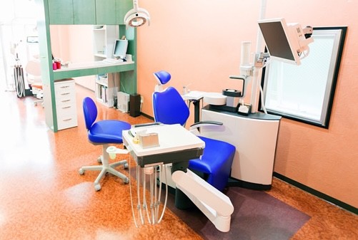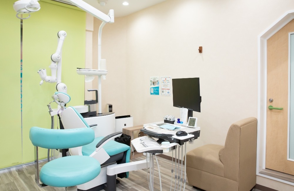 院内は段差を無くしたバリアフリー設計で、落ち着いた個室やキッズルームを完備しています。診療台のすぐ横でお子様が遊べるスペースも用意されており、小さなお子様連れの患者様も安心して治療を受けることが可能です。