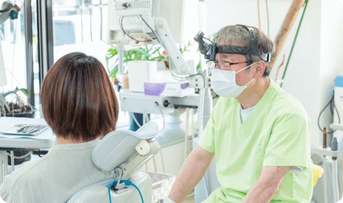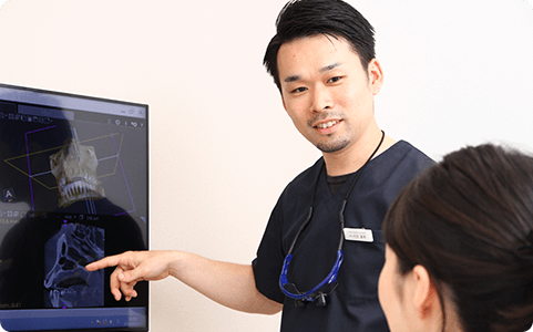 診療では、天然歯を残すため「できる限り削らない」「痛みを抑える」ことを重視しています。ライフスタイルを考慮したオーダーメイドの治療計画を立て、丁寧な説明と同意を徹底。歯科用CTを活用したインプラントや、セレックによる短期間での白い被せ物の提供、マイクロスコープを駆使した精密な根管治療など、充実した設備によって精度の高い歯科医療を提供しています。