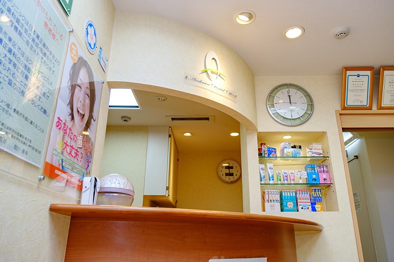 待合室には絵本やマンガが充実しており、毎月入れ替えが行われています。お子様連れの患者様のために天井にDVDモニターを設置し、ユニットの向きを工夫して見守りやすくするなど細やかに配慮されています。急な雨のための貸し出し傘や老眼鏡の用意など、随所に気配りが感じられる施設環境も魅力です。