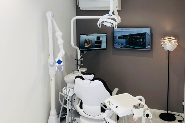 院内にはプライバシーに配慮した個室の診察室や、お子様連れの患者様も安心できるキッズルームが完備されています。衛生面では高圧蒸気滅菌器や口腔外バキュームを導入し、感染リスクを軽減するクリーンな環境を維持しています。モニターや口腔内カメラを活用した、視覚的にわかりやすい説明が行われているのも魅力です。