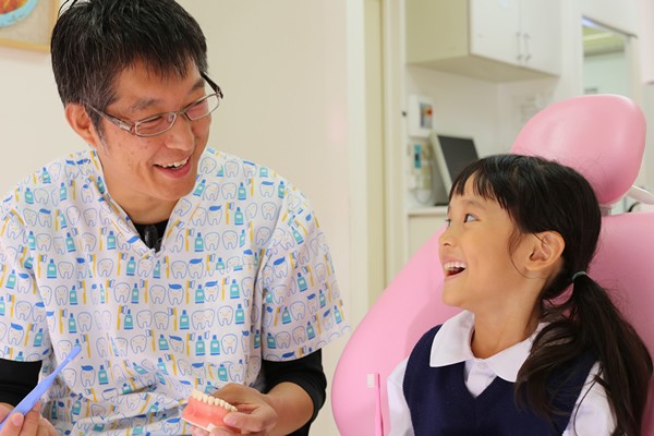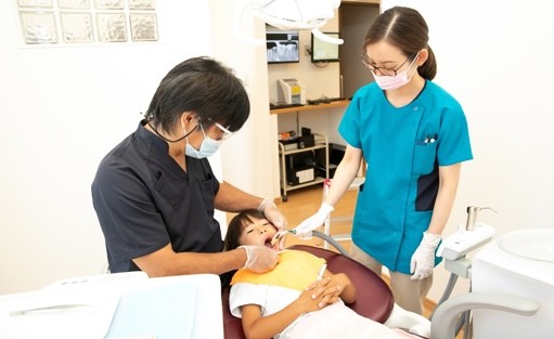 こちらの医院では、歯学博士の院長が小児歯科と矯正歯科を担当し、お子様の心身の成長をサポートしています。安全な処置のための「ラバーダム防湿」や、リラックスして治療を受けられる「笑気吸入麻酔」など、個々のペースに合わせた処置が可能です。