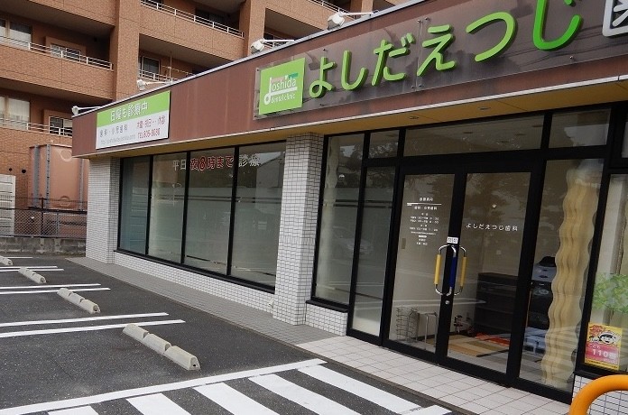 よしだえつじ歯科は、JR今宿駅から南東へ徒歩6分の場所に位置しています。駐車場も完備されており、満車の際も受付へ相談が可能です。朝8時頃から予約の電話を受け付けている点も、急な相談の際に心強い特徴といえるでしょう。
