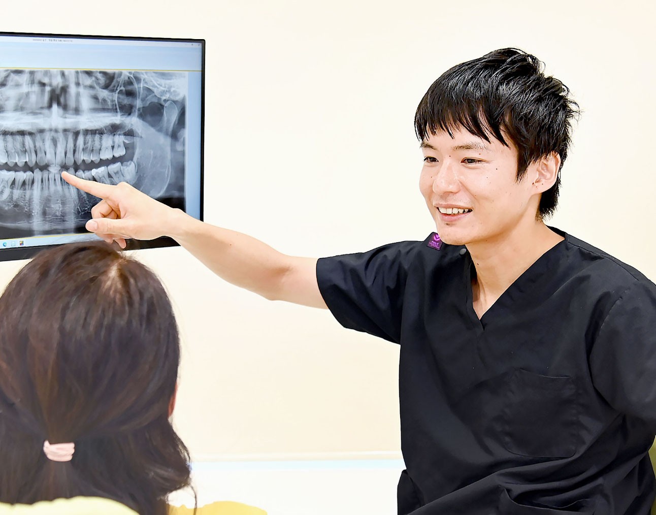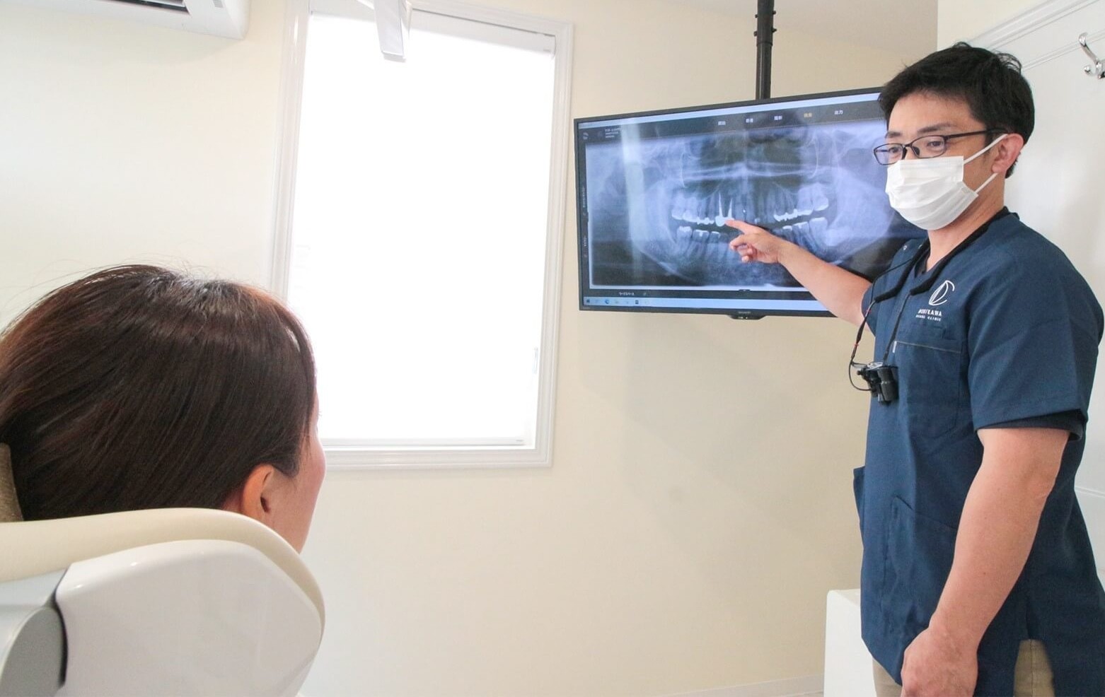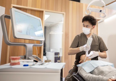 院内には歯科用CTや口腔内スキャナーなどの先進設備を完備。1時間の丁寧なカウンセリングを実施し、モニターでお口の状態を提示しながら、歯の修復サイクルを断つための納得感のある説明を行っています。
