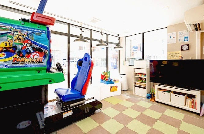 施設内には、ゲームや漫画300冊以上を備えた充実のキッズルームがあり、お子様が楽しく通える工夫が凝らされています。衛生管理も徹底しており、高性能な滅菌器や、除菌水を作る「エピオスエコシステム」を導入しています。