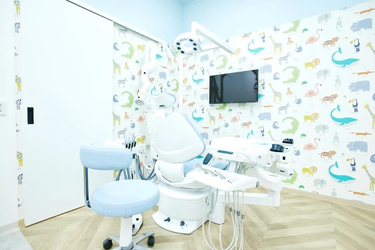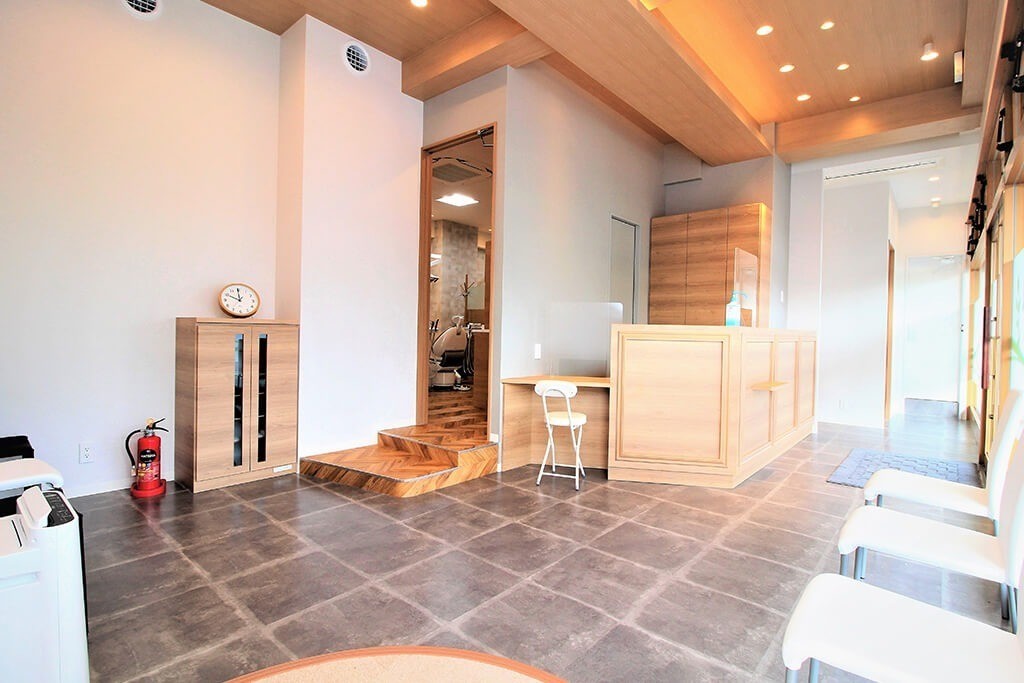 院内はスロープを備えたバリアフリー設計となっており、ベビーカーや車椅子の方も安心です。診療室から見える位置にキッズスペースが設置されているため、お子様連れの患者様も落ち着いて治療に専念できる環境となっています。診療スペースは広々とした半個室で、各チェアのモニターを用いた視覚的な説明が可能です。