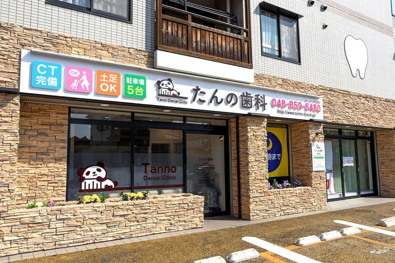 たんの歯科は、JR与野本町駅 西口から徒歩5分の場所に位置しています。駐車場を5台分完備しているため、与野インター方面などからお車で通院する際も便利です。平日は夜21時まで、さらに土日も診療を行っています。