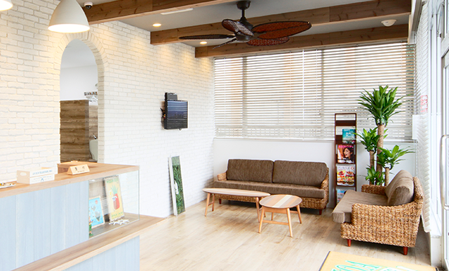 院内はハワイのリゾート風をコンセプトとした内装で、リラックスして過ごせる空間です。キッズスペースやおむつ交換台、ベビーカー預かりスペースを完備し、お子様連れの患者様も安心して通院できます。また、CTやマイクロスコープ、6倍率のルーペといった機器を導入。健康な歯を傷つけない精密な治療を提供できる環境を整えています。