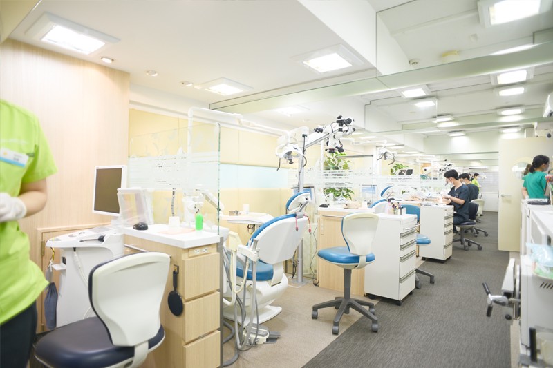 医院はクリニックビル3階にあり、スロープやエレベーターが完備されているため入館もスムーズです。院内では徹底した感染対策を実施し、歯を削る機器や器具は専用の滅菌器で使用前に滅菌されています。