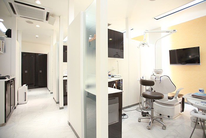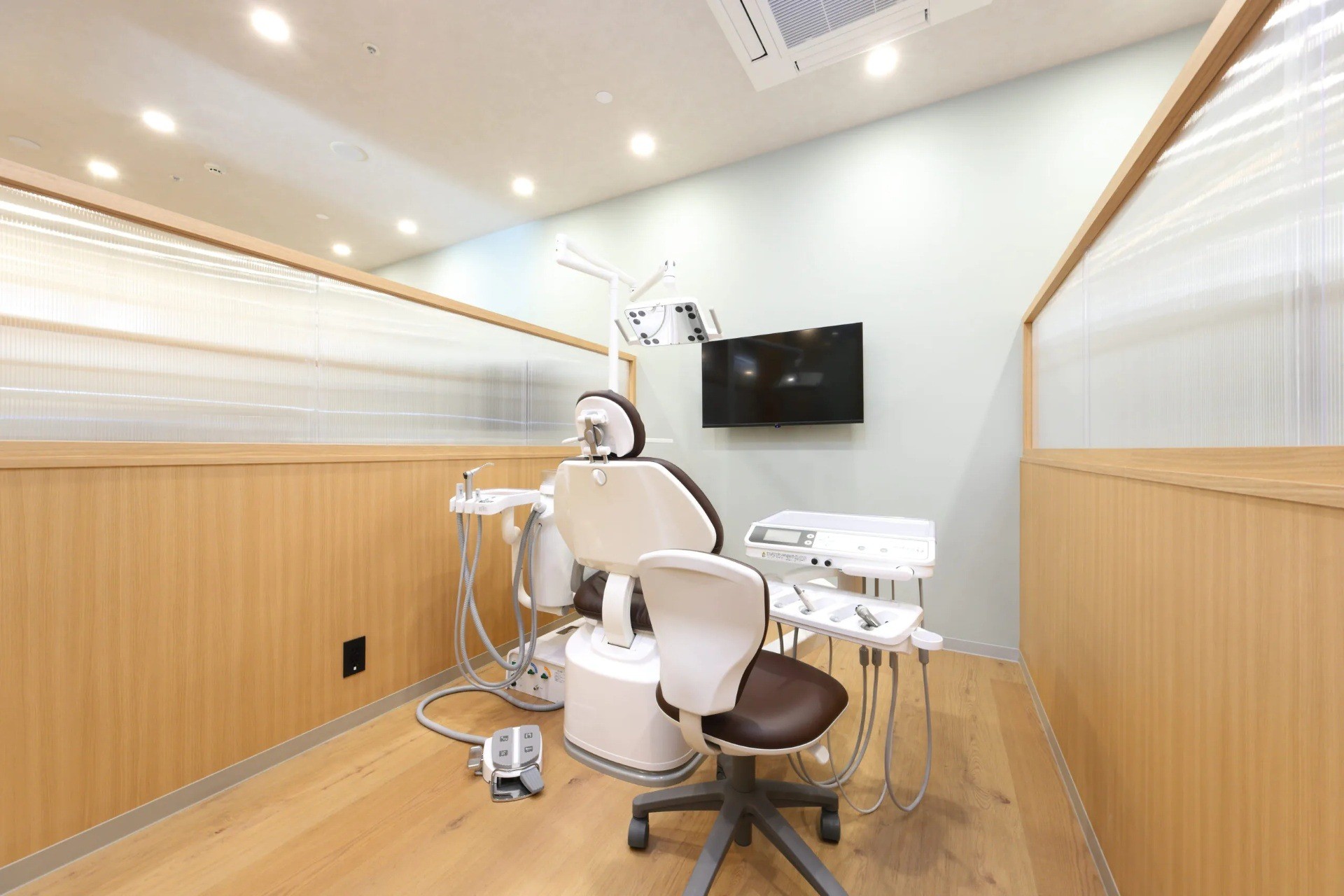 診療室は完全個室タイプとなっており、周囲の目を気にせずリラックスして治療を受けられます。被ばく量の少ないデジタルレントゲンを採用しているほか、清潔な洗面台を備えたレストルームも完備された環境です。