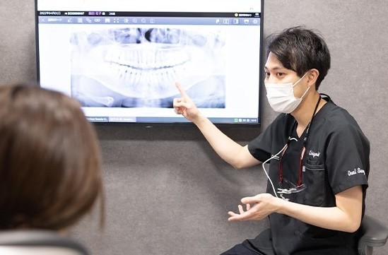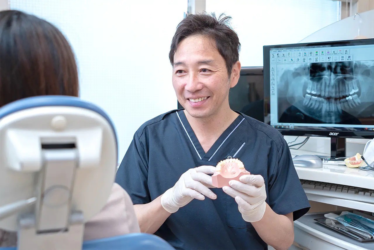 こちらの医院には日本顎咬合学会認定医である院長が在籍し、インプラントや矯正、虫歯治療など幅広く対応しています。一人の歯科医師が継続して診る体制にこだわり、大型モニターでお口の写真を共有する「見て分かる治療」を実践。専門知識や経験に基づき、患者様一人ひとりに合わせた安心で高品質な歯科医療を提供しています。