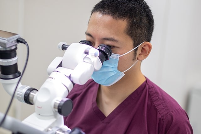 こちらの医院では、忙しい方向けの「短期集中治療」や、寝ている間に処置が終わる「睡眠無痛治療」に対応しています。「歯を残す」ことにこだわり、日本歯周病学会の専門医・指導医や日本顕微鏡歯科学会認定医である院長が治療に対応。全ての治療においてマイクロスコープ等を使用する「高倍率治療100%」を実践し、削る量を最小限に抑える精密な処置が特色です。
