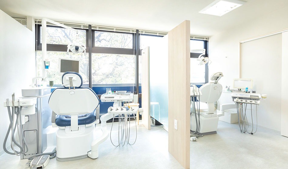 院内はスロープを設置したバリアフリー設計で、ベビーカーの乗り入れもスムーズです。診療室はすべて個室となっており、周囲の視線を気にせず治療に専念できます。CTやマイクロスコープなどの高度医療設備を完備し、精密な治療を提供。パウダーコーナーも備えるなど、患者様がリラックスして通える環境が整っています。