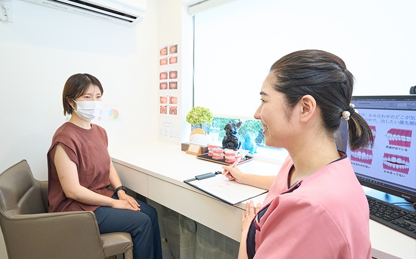 診療室はすべて完全個室のプライベート空間で、プライバシーを守りながら安心して治療を受けられます。精密な診断に基づき、歯だけでなく顎や噛み合わせを含めた全体的な治療計画を複数提示してくれるのも特徴です。女性歯科医師も在籍しており、丁寧なカウンセリングを通じて患者様が納得のいく選択ができる環境が整っています。