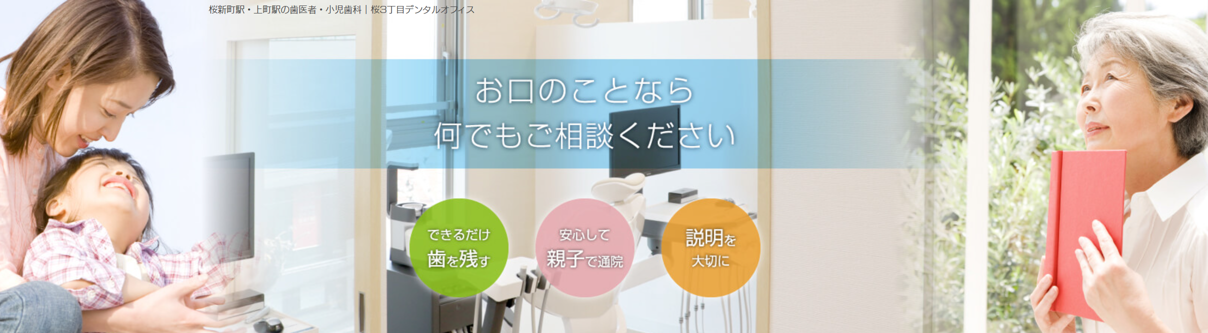 桜3丁目デンタルオフィスは、桜新町駅西口から徒歩15分の場所にあり、一般歯科、矯正歯科、インプラントなど様々な診療を行っていて、将来を見据えて歯を残すことを第一に考え、できるだけ削らず抜歯をしない治療を心掛けています。
