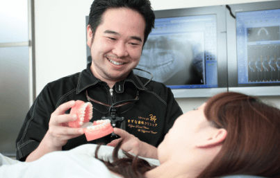 厚生労働省認定のかかりつけ歯科医機能強化型診療所に認定され、歯周病リスクの高い患者様には月1回の保険診療によるメンテナンスにも対応しています。英語での診療対応も可能です。