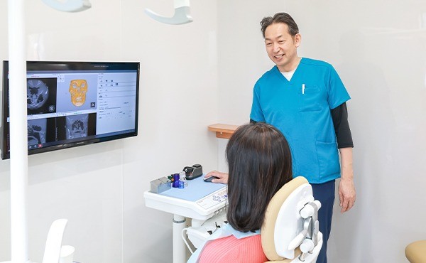 こちらの医院では、「できる限り大切な歯を抜かない」方針のもと、歯周病治療や根管治療に力を入れた診療を行っています。CTやマイクロスコープといった精密検査機器を備えており、肉眼では確認しにくい部分まで丁寧に処置する体制が整っています。
