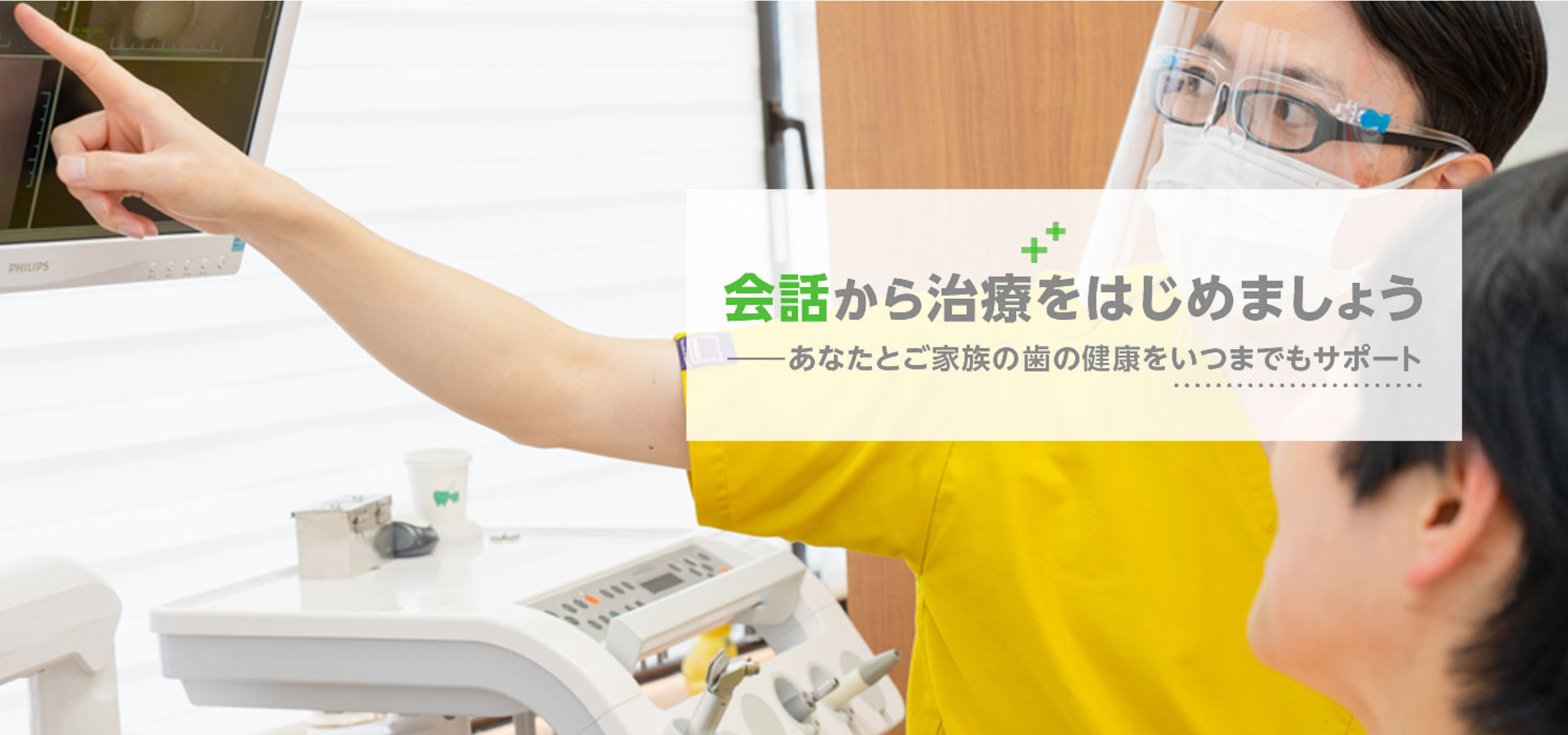 ・お口の状態や治療内容を、モニターなどを使用し丁寧に説明
