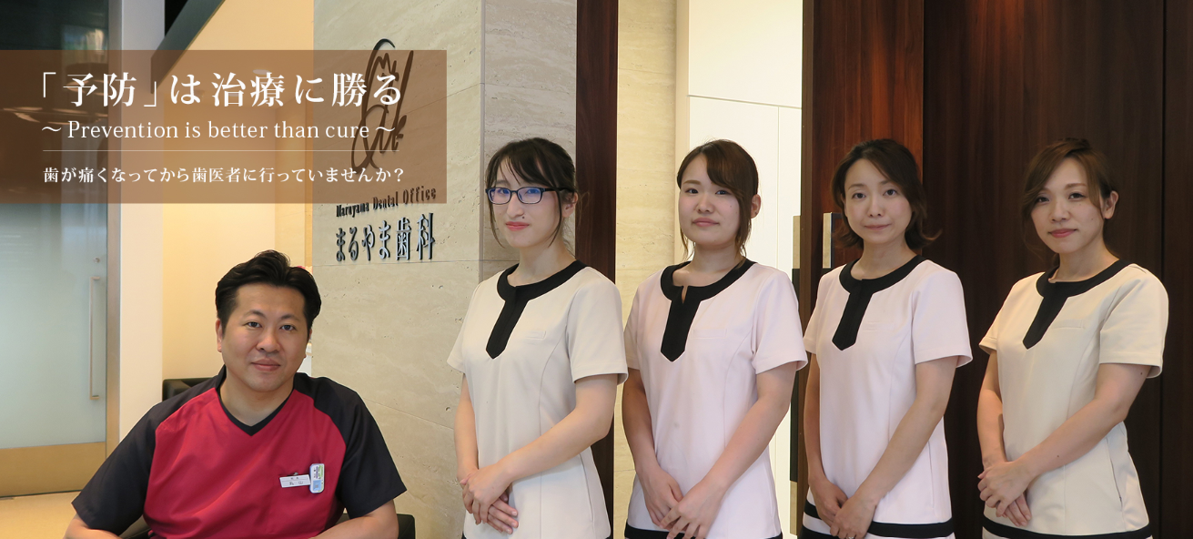 まるやま歯科は、北浜駅6番出口から徒歩3分の距離にあり、一般歯科から小児歯科、マタニティ歯科、顎関節症治療など幅広い診療を行なっています。また、お口の状況を細かく確認した上で、検査結果の画像と共にわかりやすくご説明しており、ご納得いただいてから治療方針をご提案しています。