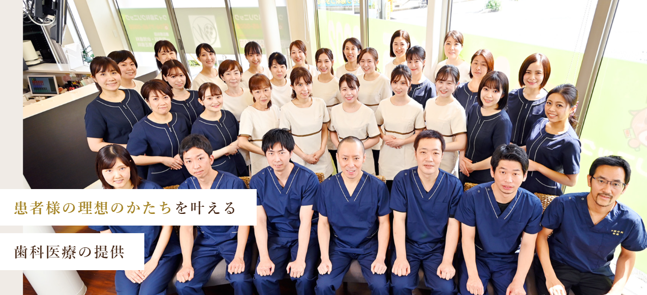 チーム医療で様々なお悩みにもお応えしています。 例えば、矯正やインプラント、歯科口腔外科などは、その治療を担当する歯科医師を大学病院から招き、診断を行っています。 多くの専門家が関わる「総合歯科」によって、本質的な医療の提供。