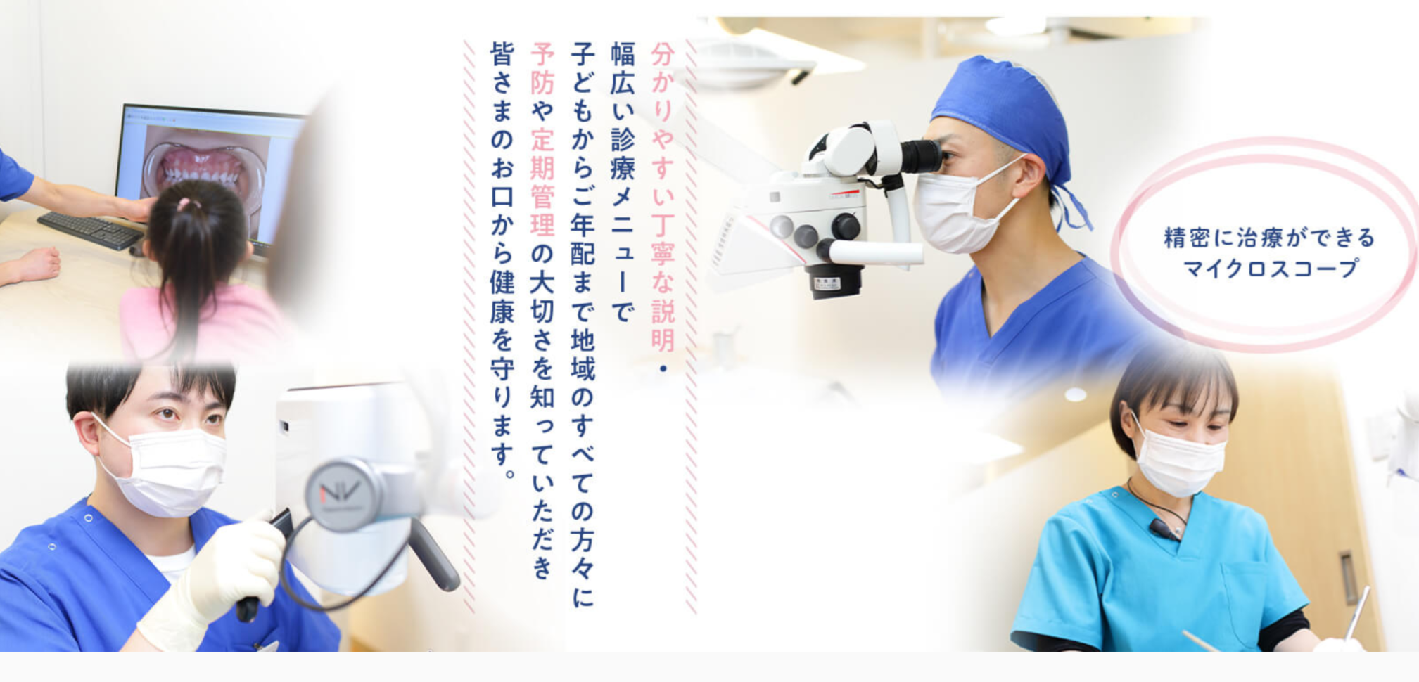 診療内容は、一般歯科から専門医によるインプラント、矯正歯科など包括的にご提供しております。また、最新の設備と診療技術で精密な検査を行い、原因を取り除く治療に力を入れています。 こちらのクリニックは、なるべく歯を削らず、負担を最小限に抑えることで、患者様一人一人に合った最適な治療をご提案しています。さらに、予防プログラムを通じて、口腔の健康を長期間にわたって維持するサポートも行っておりますので、ぜひご相談ください。