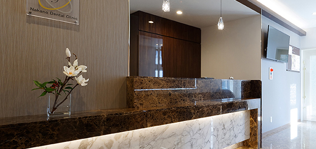中野歯科医院は、羽村駅 東口 徒歩12分の距離に位置する土曜日も18:00まで診療を行っている医院で、お車でお越しの際にも医院敷地内に4台分、付近の第2駐車場に3台分の駐車スペースを利用して通院いただけます。診療科目は一般歯科、予防歯科、矯正歯科、インプラントから訪問歯科に至るまで多岐にわたり提供されています。矯正歯科のみ、日曜日の10:00〜15:00が診療時間となっているためご注意ください。外観はモダンで洗練された雰囲気、医院内はシックなデザインで落ち着いた環境です。