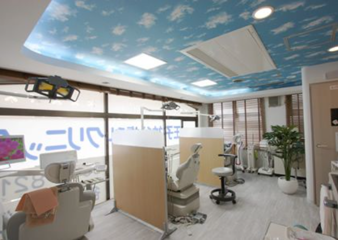 診療台に乗ると、目の前に青空を模した天井が広がり、開放的な気持ちで治療を受けられます。「自分の身体は自分で守ってほしい」という想いのもと、患者様が自分でできる体操や、歯を良くする食品の情報も提供しているため、普段の生活から積極的に口腔内をケアをしたい方にもおすすめのクリニックです。