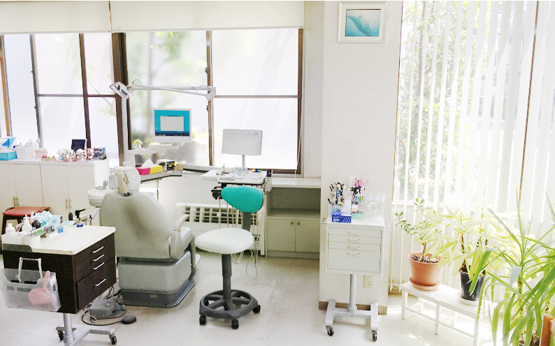 テレビやおもちゃ、絵本が多く用意されたキッズスペースのある待合室は、天然光がたくさん入る落ち着いた空間で、親子での通院にも適しています。診療室にはユニットが3台用意されており、簡易の間仕切りによって区切られています。「誰にでも美と健康を得るチャンスがある」と考える院長のもとで治療を受けたい方は、ぜひ一度ご相談ください。