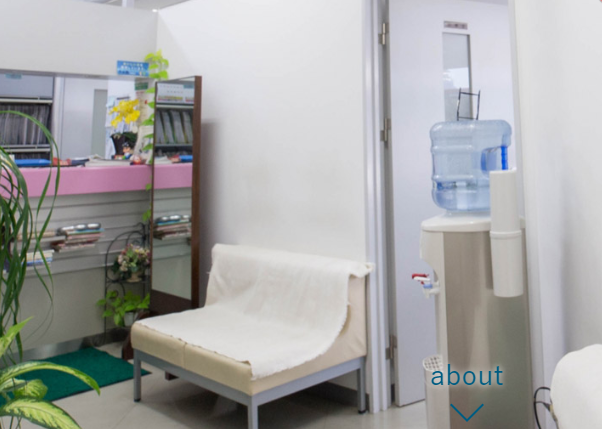 待合室は白を基調とした清潔感のある空間で、ウォーターサーバーを自由に利用できます。定期健診やホワイトニングにはエステルームが使用され、診療台はマッサージ機能付きの柔らかいソファになっているため、長時間の診療でもリラックスできる環境が整っています。
