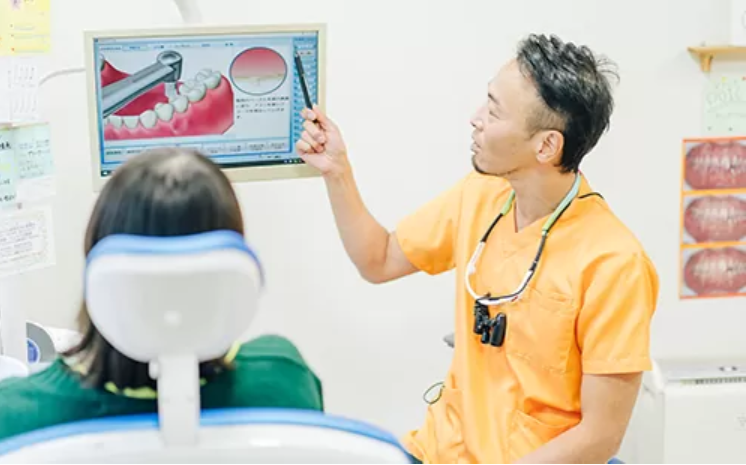 設備としてはマイクロスコープや位相差顕微鏡・ペリオセーバーを導入し、高度で正確な治療を目指しています。また、患者様は口腔内説明用カメラとモニターで実際のお口の中を確認することができ、安心かつ納得の上で治療を受けることが可能です。