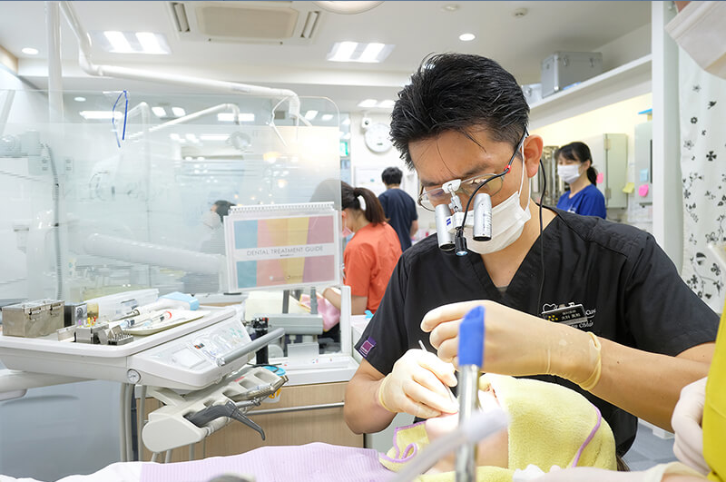 また、こちらのクリニックでは小さなお子様が通いやすくなるような配慮が随所に施されています。待合室にキッズスペースを完備して、親御様の治療中に退屈しない空間を提供していることに加え、お子様の治療前には親御様のみでなくお子様にもわかるように治療内容を説明し、不安を取り除く工夫がなされています。診療室はすべて完全個室となっているため、プライバシーや感染症対策が気になる方にもおすすめのクリニックです。