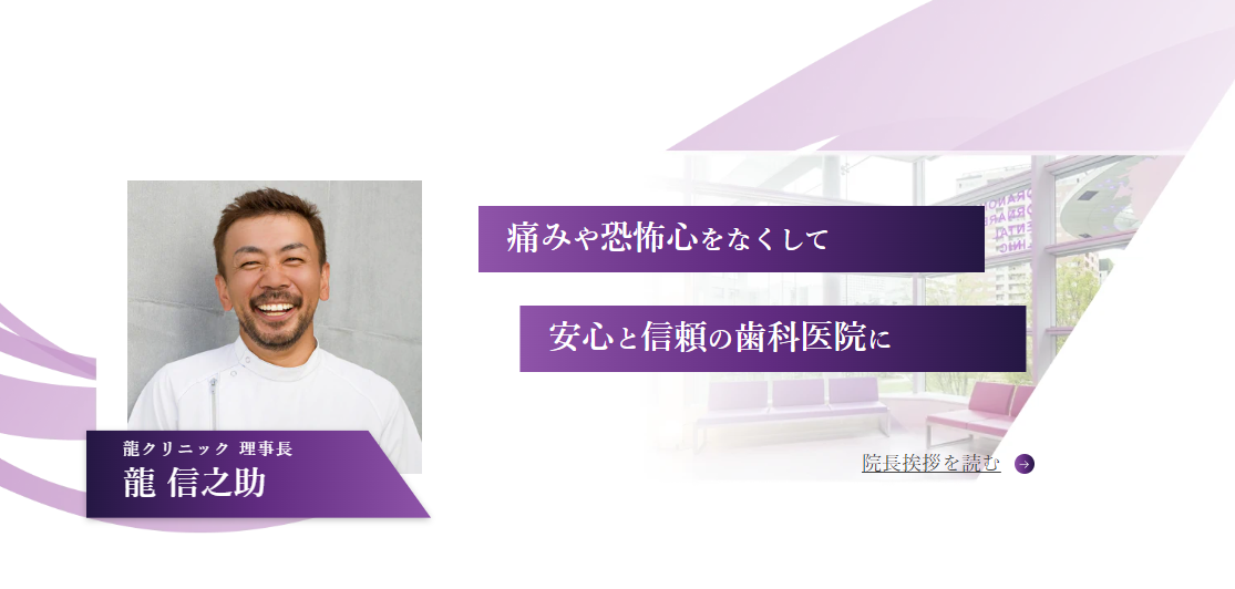 こちらのクリニックの特徴は、柳瀬賢人院長が指導する「痛くない、削らない、抜かない」の三つのないを方針とする点です。柳瀬院長は口腔外科および歯周病インプラントの専門医であり、一般的な虫歯治療から親知らずの抜歯、インプラント治療や高度な歯周病治療まで、幅広い治療に対応しています。