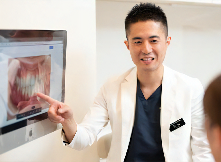 治療方針は、診察の際に撮影した口腔内の画像を見ながら、わかりやすく説明します。診療室はすべて個室ですので、プライバシーが守られているため安心です。患者様には、さまざまな症例写真を参考にするなどして、最適な治療方法を提案します。いつまでも楽しくお話や食事ができるように長期的にサポートしていきます。