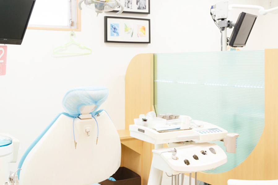 ファミリー診療室が完備されており、診療室内にあるキッズコーナーでお子様が楽しく遊ぶことができるのが特徴的です。保護者の方の治療の際には診療室にお子様も一緒に入室可能ですので、親子ともに安心して治療を受けることができます。