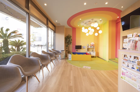 院内はバリアフリーとなっており、車椅子・ベビーカーのまま診療室に入れます。待合室にはキッズスペースが設けられており、ボールプールやテレビモニターなど、小さいお子様がワクワクする仕掛けがたくさん施されています。また、おむつ交換台も用意されているため、未就学のお子様はもちろんのこと、乳児を連れて通院したい方でも通いやすいのが嬉しいポイントです。診療室はプライバシーに配慮された個室ではありますが、医院コンセプトである虹色カラーで診療台や室内を彩ることで閉鎖的に感じない配慮をされています。