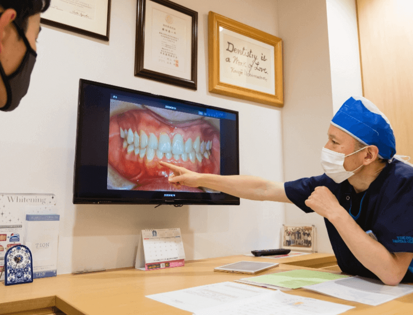 ルミネ千住歯科クリニックでは、カウンセリングに最低30分をかけ、患者の話をしっかりと聞くことを重視しています。口腔内の検査後には、検査結果がプリントされた用紙が提供され、患者が自身の口腔の状態を理解しやすいよう配慮されています。