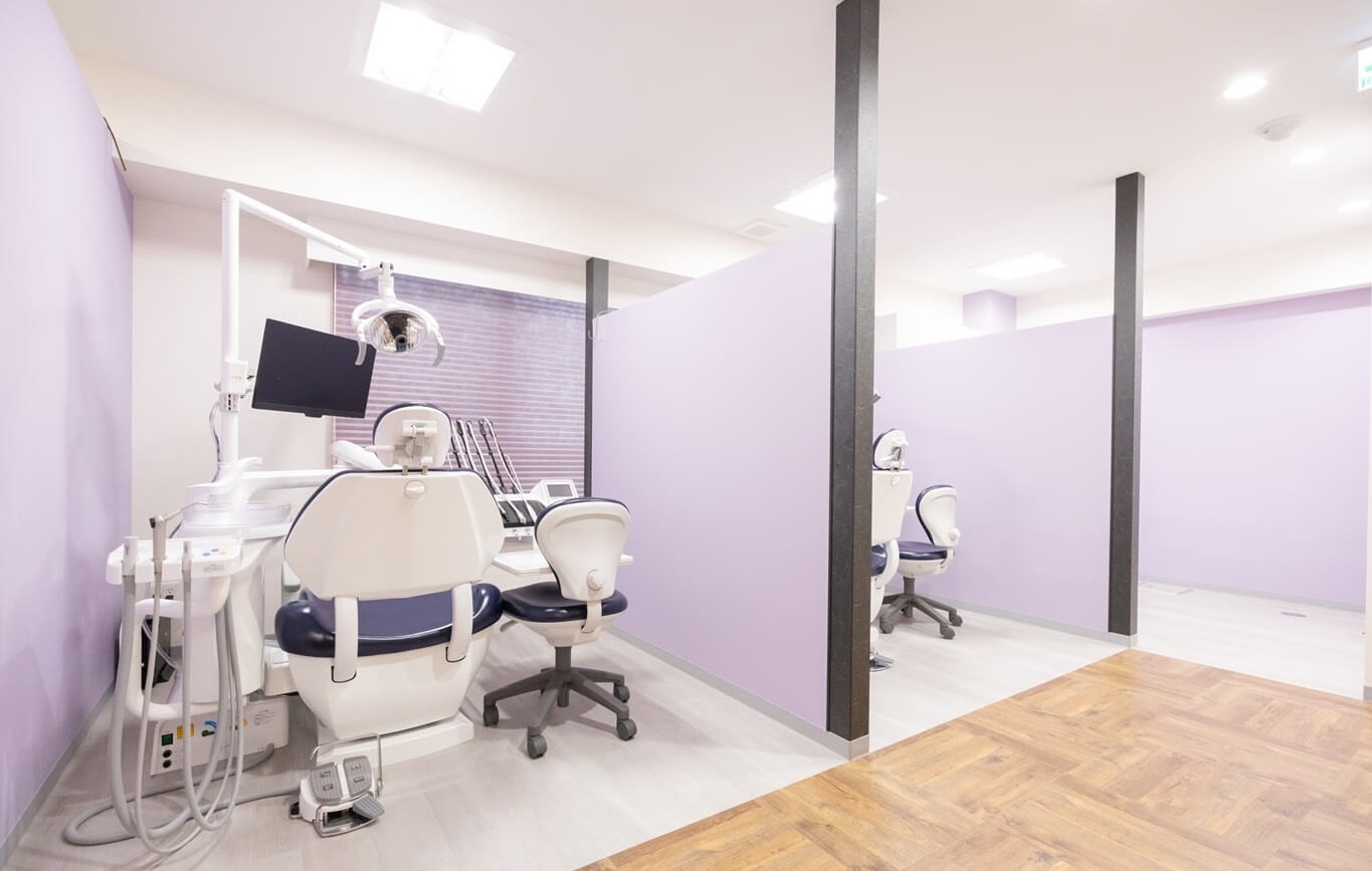 当院ではプライバシーに配慮された個室の診療室が完備されており、予防歯科にいたってはマッサージ機能がついたユニットも用意されているため、リラックスして診療を受けられる環境が充実しています。6階に歯科医院が所在しているため、診療室からは見晴らしの良い中野坂上の街並みが見渡せるのも魅力的です。