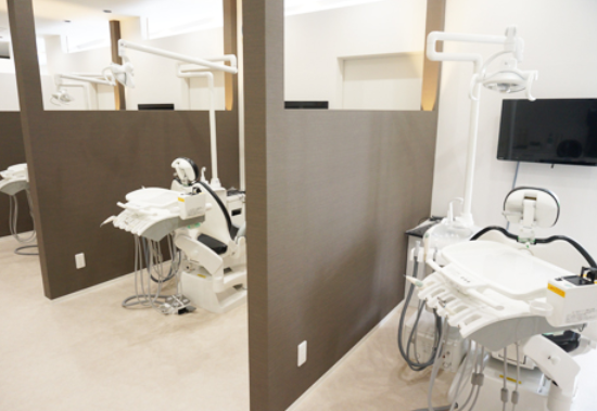 また、院内は清潔で明るい雰囲気の空間になるように心がけています。リラックスして治療を受けられるように、患者様のプライバシーを尊重した院内になっております。複数の歯科医師と歯科衛生士で、7台の診療ユニットを駆使して待ち時間が出ないように治療を回しています。