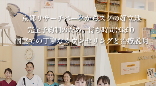 院内にはキッズルームが用意されており、お子様が治療の待ち時間を退屈しないおもちゃが備えられています。また、人目が気にならないカウンセリングルームで、患者様の年齢や生活習慣にあわせて一人一人にあった最良の治療プランを提案しています。京都リサーチパーク周辺の歯医者さんをお探しの方は、一度こちらのクリニックまでご相談ください。