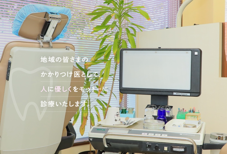診療内容は、一般歯科・小児歯科・予防歯科・審美歯科を中心に、インプラント・レーザー治療・ホワイトニングなどの最新医療の提供も行っています。『人に優しく』をモットーに診療を行っており、無痛治療を心掛けているのが特徴です。近年多様化してきている歯科治療のニーズに応えるため、審美治療やインプラントなどの最新治療にも努めています。