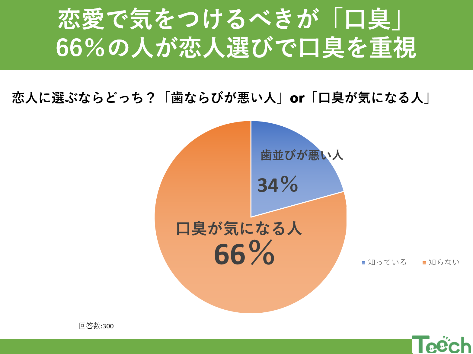 私たちが恋愛について考えるとき、相手の外見や性格、価値観など、多くの要素を重視します。今回は、恋人にするなら「歯並びが悪い人」と「口臭が気になる人」のどちらを選ぶか、というアンケートを実施しました。その結果、多くの人が「歯並びが悪い人」を選ぶことがわかりました。全体の66%の人が「歯並びが悪い人」を選び、34%の人が「口臭が気になる人」を選んでいます。この結果から見ても、口臭が恋愛において大きな影響を与えることが分かります。