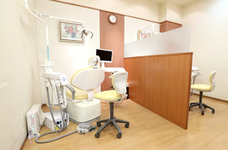 待合室は広めにとられており、おもちゃや絵本が豊富なキッズコーナーも完備しています。院内は完全バリアフリーのため、靴を脱がなくても診療でき、車いすの方もそのまま診療することが可能です。ケアで来院される方は専用の「ケアルーム」にて、緊張せずゆったりとした気分で歯石除去などのクリーニングを受けることができます。