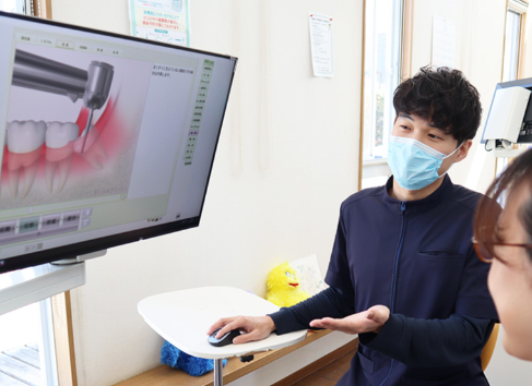 こちらの医院の特徴として、初診時のカウンセリングと治療前の説明を丁寧に細かく行っている点が挙げられます。また、新しい設備で精密な治療を行っているのも特徴で、3D画像で診断可能な「歯科用CTレントゲン」、実際のお口の中の映像を撮影する「口腔内カメラ」、痛みが非常に少なく不快な音や振動も起こらない「YAGレーザー」などを導入しています。