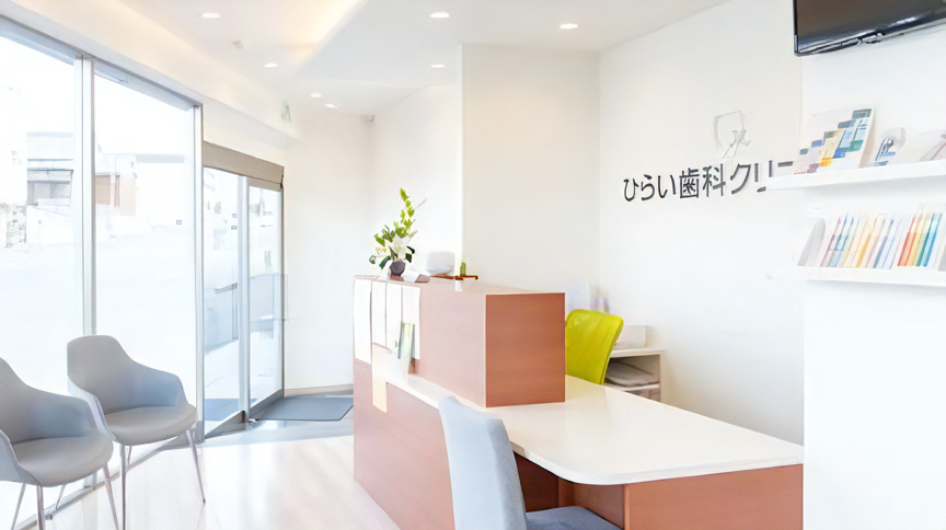 医院の名前が示す通り、患者様の笑顔が溢れる医院を目指しています。 痛みに配慮した治療を重視しており、麻酔の際には、麻酔薬の使用や注射の技術に細心の注意を払っています。具体的には、麻酔薬を注射する前の準備や、注射の仕方、麻酔液の注入圧力、注射針の太さなど、さまざまな工夫を施しています。