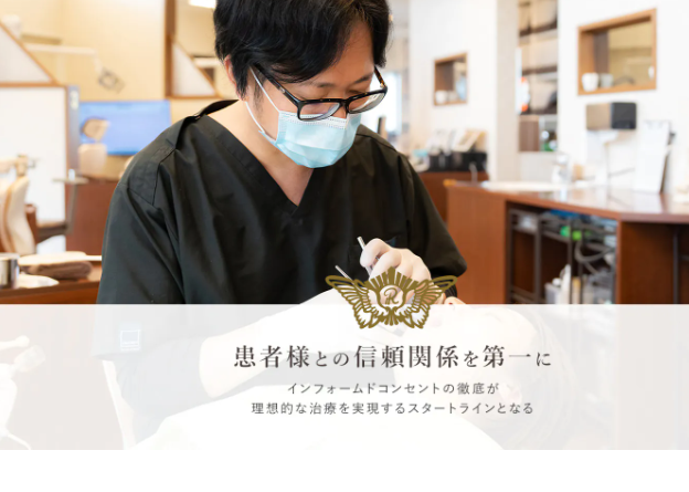 診療内容は、むし歯・根管治療、歯周病治療、予防歯科、小児歯科、矯正歯科(マウスピース矯正)、インプラント、親知らずの抜歯、顎関節治療、入れ歯、ホワイトニングなどを提供しています。説明と同意を大切にしており、全ての治療には危険と利益があることを理解していただき、お互いに後悔のない治療となるよう努めています。そのためにインフォームドコンセントを徹底し、「知らない間に削られていた」「何をされたかわからなかった」というトラブルをできるかぎりなくす努力をしているとのことです。
