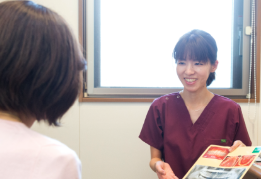 こちらは、歯科衛生士チームと共に、お子様からご高齢の方の口腔ケアを行い、全身の健康を支える歯科医院です。 お気軽にご相談ください。